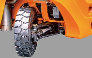 結實的轉向橋體,并且橋體與車間之間用特種橡膠緩沖塊連接,減小整車振動。[12噸車型]