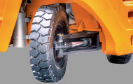 結實的轉向橋體,并且橋體與車間之間用特種橡膠緩沖塊連接,減小整車振動。